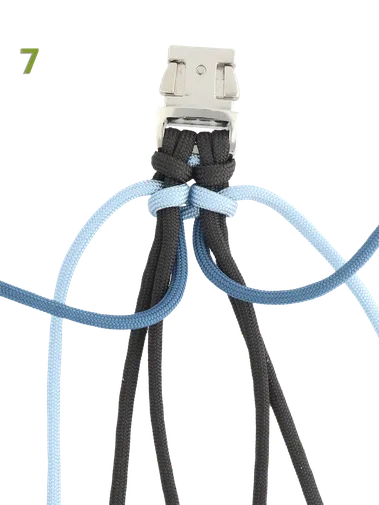 Réalisez le nœud Colour River Bar avec plusieurs couleurs de Paracord 550 Type III. Le nœud mesurera environ 2 cm de large et 1,1 cm d'épaisseur. Dans le MatchMaker, vous pouvez voir combien de mètres de paracorde vous avez besoin et vous pouvez choisir les couleurs pour votre projet.