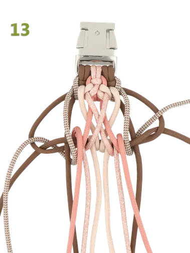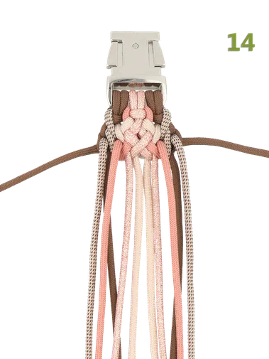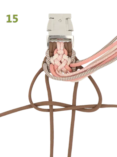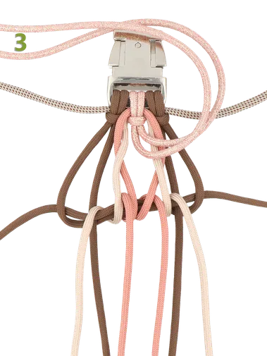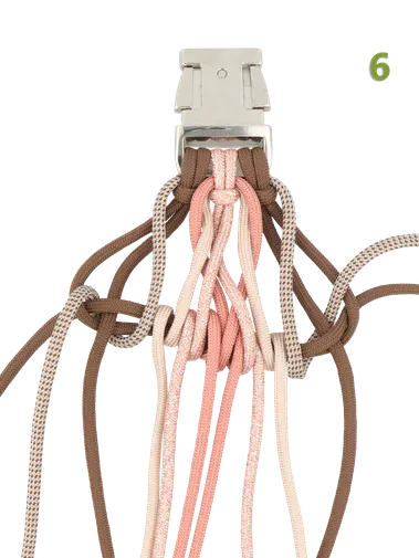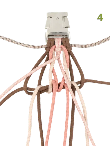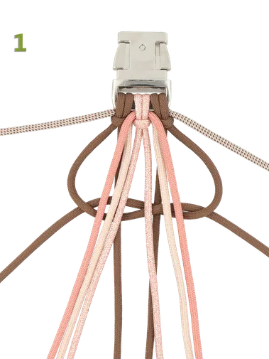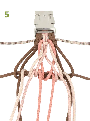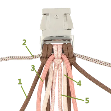 Couleur 1: Hazelnut Brown Paracord 550 Type III, couleur 2: Latte - Color FX , couleur 3: Velvet Pink, couleur 4: Pearl Rosé et couleur 5: Sparkly Rose